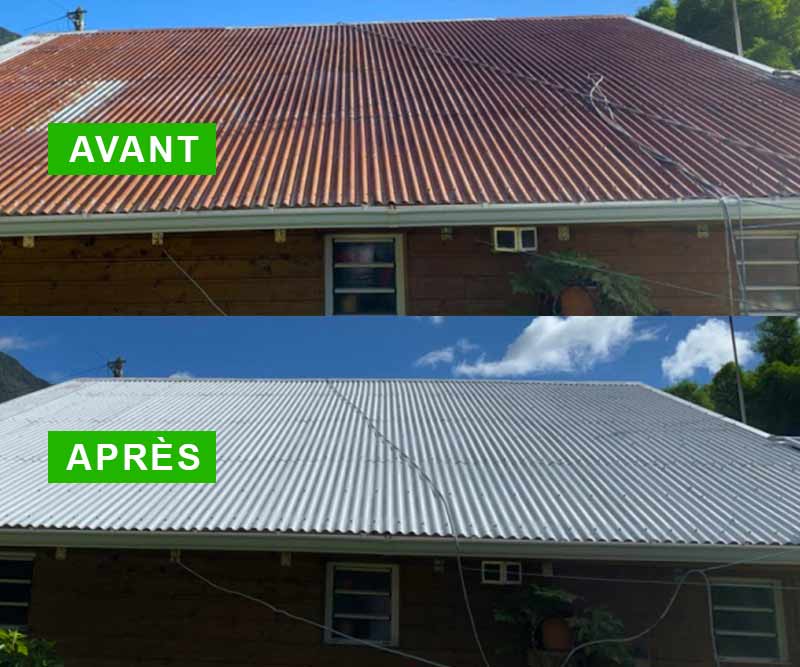 Il n’est pas forcément nécessaire de changer l’intégralité de votre toiture lorsque celle-ci est en mauvais état. La peinture toiture est une excellente solution alternative puisqu’elle bénéficie d’une très bonne résistance à la rouille, aux UV et aux agressions atmosphériques. Elle permet de protéger et de redonner une nouvelle jeunesse aux toitures ternies par le temps des climats sévères et tropicaux tout en réduisant très fortement la température sur et sous tôle. Très durable et résistante dans le temps.